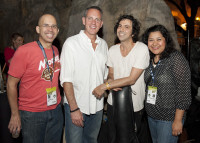 BMI's Porfirio Piña, Mike O'Neill and Marissa Lopez join David Garza for a photo after his set at BMI’s Thursday night SXSW showcase. View Photo