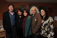 Pictured at the BMI-hosted dinner are (L-R): Elliott Landy, photographer; Johanna Hall, songwriter, Orleans Member; Robbie Dupree, singer/songwriter; Doreen Ringer Ross, Vice President Film/TV Relations, BMI; and Leon Gast, filmmaker. View Photo