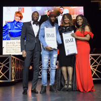 BMI’s Catherine Brewton and Wardell Malloy present Korey Bowie with an award for his song “I’m Yours.” Also pictured Dr. Leonard Scott of Tyscot Songs at the 2017 BMI Trailblazers of Gospel Music Honors at Rialto Center for the Arts on January 14, 2017 in Atlanta, Georgia. View Photo