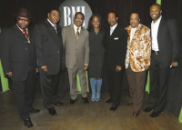 2008 BMI Trailblazers of Gospel honorees Mighty Clouds of Joy generated a flurry of excitement upon their arrival. Pictured are (l to r): Mighty Clouds of Joy members Ron Staples, Michael Cook and Joe Ligon, BMI's Catherine Brewton, Mighty Clouds of Joy members Richard Wallace and John Valentine, with BMI's Wardell Malloy. View Photo