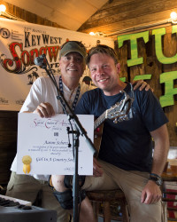 BMI’s Jody Williams presents Aaron Scherz with a Million-Air Award at Turtle Kraals during Key West Songwriters Festival on May 7, 2016. View Photo