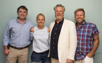 Rhett Akins, BMI’s Leslie Roberts, Robert Earl Keen and Wendell Mobley gather for a photo backstage at the San Carlos Institute during Key West Songwriters Festival on May 6, 2016. View Photo