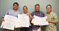 BMI’s Leslie Roberts and Jody Williams present Rhett Akins and Wendell Mobley with Million-Air Awards at the San Carlos Institute during Key West Songwriters Festival on May 6, 2016. View Photo