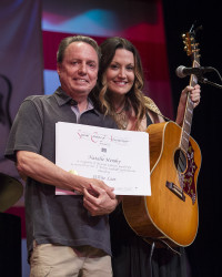 BMI’s Jody Williams presents Natalie Hemby with a Million-Air Award at the San Carlos Institute during Key West Songwriters Festival on May 5, 2016. View Photo