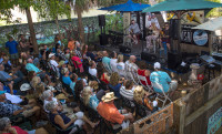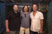 BMI’s Mason Hunter, artist James Slater and Blue Heaven owner Richard Hatch gather for a photo at Blue Heaven during Key West Songwriters Festival on May 5, 2016. View Photo