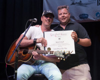 Rick Ferrell receives a Million-Air Award from BMI’s Bradley Collins at the Key West Theatre during Key West Songwriters Festival on May 5, 2016. View Photo