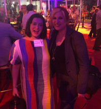 Gathered for a photo at the TV Academy’s reception are BMI composer and Emmy winner Rachel Bloom and BMI’s Anne Cecere. View Photo