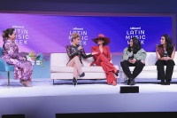 (L-R) Guest, Adriana Ríos, BMI’s Teresa Romo, Ana Bárbara and Leila Cobo during Billboard Latin Music Week at the Faena Forum in Miami on September 21. View Photo