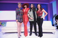 (L-R) BMI's “How I Wrote That Song” panelists Adriana Ríos, Ana Bárbara, Ivonne Galaz and Lupita Infante are all smiles during Billboard Latin Music Week at the Faena Forum in Miami on September 21. View Photo