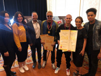 Pictured (L-R) BMI’s Alex Flores, Krys De Luna and Joey Mercado posed next Luny and Tiny along with BMI’s Delia Orjuela and Cee Barrett backstage at the Billboard Latin Music Week, at the Venetian Hotel in Las Vegas during which the producers were presented their BMI Awards on April 24. View Photo