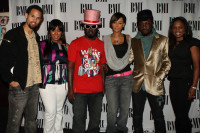 Pictured are (l-r): co-moderator and Access Hollywood Music Correspondent and A&R Consultant, MySpace Records, Quddus Philippe; BMI songwriter and panelist Makeba Riddick; BMI songwriter and panelist T-Pain; songwriter and panelist Keri Hilson; BMI songwriter and panelist will.i.am; and BMI Vice President, Writer/Publisher Relations, Atlanta and panel moderator Catherine Brewton. View Photo