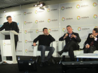 BMI’s Richard Conlon addresses the audience at the cloud music panel during midem 2012. Pictured are moderator Emmanuel Legrand, a journalist and consultant; Scott Bagby, head of strategic partnerships at Rdio; Richard Conlon, BMI Senior VP of Corporate Strategy, Communications & New Media; and SACEM VP Thierry Desurmont. View Photo