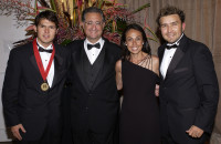 Banda El Recodo band members Joel and Alfonso Lizarraga at the 2003 BMI Latin Awards with BMI's Del Bryant and Delia Orjuela. View Photo