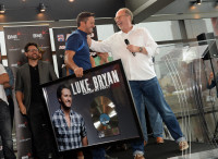 UMG Nashville’s Mike Dungan surprises Luke with a plaque to commemorate “Crash My Party’s” double platinum certification. View Photo