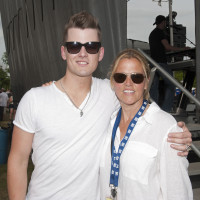 Chase Bryant and BMI’s Leslie Roberts gather for a photo at the BMI Tailgate Party outside LP Field during the CMA Festival on June 6, 2014, in Nashville, TN. View Photo
