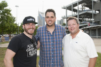 Whiskey Jam’s Ward Gunther, Josh Hoge and BMI’s Bradley Collins gather for a photo at the BMI Tailgate Party outside LP Field during the CMA Festival on June 7, 2014, in Nashville, TN. View Photo