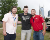 BMI’s Mason Hunter, David Fanning and Texas Roadhouse's Tyler Durham gather for a photo at the BMI Tailgate Party during CMA Festival outside LP Field on June 5, 2014, in Nashville, TN. View Photo