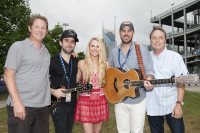 Brian O’Neil, BMI’s Leslie Roberts, Levi Hummon, Fletcher Foster, Marcus Hummon and BMI's Penny Everhard gather for a photo at the AT&T Stage during the CMA Festival Fan Fair on June 5, 2014, in Nashville, TN. View Photo