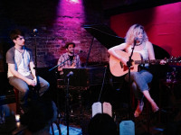BMI presented its monthly Acoustic Lounge showcase on May 27 at Rockwood Music Hall in New York City. Pictured strumming the guitar at the musical roundup is Caroline Smith (right), while her co-performers Alec C. (left) and Jacob Jeffries (center) look on. View Photo
