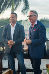 Boca Raton Resort and Beach Club’s Kevin Ives, Director of Restaurants and Bars, and John Tolbert, President and General Manager, enjoy the Smokes, Brews & BBQ event. View Photo