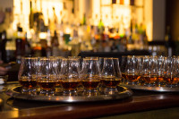 A resort employee prepares one of the many bourbon samples for the evening. View Photo