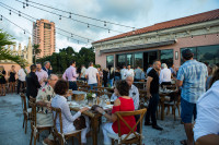 Attendees of Smokes, Brews, & BBQ were able to mingle and enjoy specialty cocktails before enjoying a barbeque feast and live music. View Photo