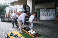 Guests enjoy a game of cornhole thanks to sponsors NASH FM 103.3 and 95.5 NASH ICON. View Photo