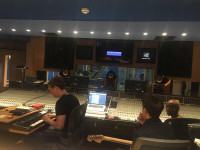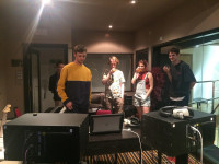 Pictured (L-R) are artist Leo Stannard, producer Jim Stewart, Abbey Road’s Christian Wright, artist Emily Burns and producer Earl Saga. View Photo