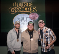 BMI songwriters Ray Fulcher, Luke Combs and Jordan Walker gather to celebrate the success of their No. 1 song “When It Rains It Pours.” View Photo