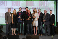 Pictured (L–R): The team behind the BMI 2014 Christian Song of the Year accepts their award. BMI’s Phil Graham and Leslie Roberts; songwriters Scott Cash; Ed Cash; and Chris Tomlin; sixsteps Songs’s Shelley and Louie Giglio; Capitol CMG Music Publishing’s Eddie DeGarmo; and BMI’s Jody Williams at the BMI Christian Music Awards. View Photo
