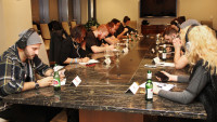 Songwriters listen to each others’ work during the Speeding Dating for Songwriters workshop. View Photo