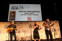 Aileen Quinn and the Leapin’ Lizards performing on the main stage during the Billboard + The Hollywood Reporter Film and TV conference. View Photo