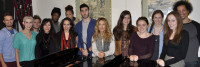 Pictured (L–R): Guatemalan singer-songwriter Piva, singer Jessi Leon, BMI Senior Director, Writer/Publisher Relations, Latin, Joey Mercado, singer Periko Leon, singer Alicastro, and singer Raquel Sofia at the BMI and Naked Monkey Entertainment “Write On Vegas” event at Hard Rock Live on November 19, 2014 in Las Vegas, Nevada. View Photo