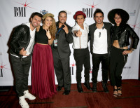 Pictured (L–R): BMI Senior Director, Writer/Publisher Relations, Latin, Joey Mercado, DJ Buddha, El Dusty, BMI Vice President, Writer/Publisher Relations, Latin, Delia Orjuela, recording artist MLKMN, and Eptos Uno at the BMI and Naked Monkey Entertainment “Write On Vegas” event at Hard Rock Live on November 19, 2014 in Las Vegas, Nevada. View Photo