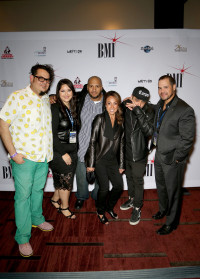 Pictured (L–R): Artist/producer Mr. Pauer, BMI Director, writer/publisher relations, Latin, Krystina DeLuna, DJ Buddha, BMI Vice President, writer/publisher Relations, Latin, Delia Orjuela, El Dusty, BMI Senior Director, Writer/Publisher Relations, Latin Joey Mercado at the BMI and Naked Monkey Entertainment “Write On Vegas” event at Hard Rock Live on November 19, 2014 in Las Vegas, Nevada. View Photo
