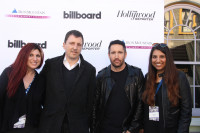 Pictured prior to the Keynote Q&A with Trent Reznor and Atticus Ross (L–R): BMI’s Anne Cecere, BMI composer Atticus Ross, Trent Reznor and BMI’s Reema Iqbal. View Photo