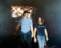 Special guest Mike Posner joins Jake Owen on stage to sing his hit song “Cooler Than Me.” Jake credits social media with bringing the two men together to collaborate. View Photo