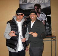 Recording artist Cosculluela (right), whose album El Principe is currently #3 on the Billboard Latin Rhythm Album chart, recently visited BMI’s Porfirio Piña (left) in New York. View Photo