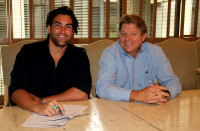 Dylan McDonald, son of five-time GRAMMY Award winner Michael McDonald, stopped by BMI Nashville to sign up as a BMI songwriter. Currently based out of Nashville, McDonald recently had a song featured in the Steve Jobs bio-pic “Jobs.” Pictured are Dylan McDonald and BMI’s Mark Mason. View Photo
