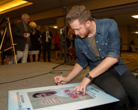 Big Yellow Dog recording artist and BMI songwriter Keelan Donovan signs the poster promoting the event. View Photo