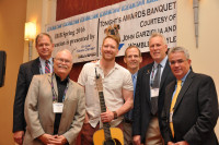 Pictured (L-R) after Baber’s performance are: Chadwick Bay Broadcasting Owner Alan Bishop, Bluff City Radio owner and Idea Bank Conference Chair Paul Coates, BMI songwriter Barrett Baber, BMI’s Dan Spears, Breck Media Group President Bob Breck and Neuhoff Media COO Mike Hulvey. View Photo