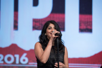 BMI singer-songwriter Ruby Velle entertains the crowd of restaurant executives at the 2016 Restaurant Leadership Conference in Phoenix. View Photo