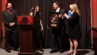 Pictured before the performances are: BMI’s Jessica Frost, Senior Vice President Marriott Global and AH&LAEF Board Chair John Adams and BMI Songwriters Abner Ramirez and Amanda Sudano of Johnnyswim. View Photo