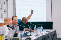 The Dynamic Partners are interviewed by press before the panel. View Photo