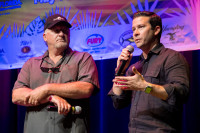 Texas Heritage Songwriters Association’s Joe Ables and Texas Music Commission’s Brendan Anthony speak at the Key West Theater during Key West Songwriters Festival on May 11, 2018, in Key West, Florida. View Photo
