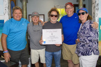 BMI’s David Preston, Jody Williams, Charlie Feldman and Allison Smith pose for a photo with Millionaire Award winner Steve Dorff (center) at Blue Macaw during Key West Songwriters Festival on May 11, 2018, in Key West, Florida. View Photo