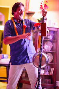 Kickoff party host Danny Goodfellow plays the Stumpf Fiddle at the BMI Maui Songwriters Festival. View Photo