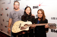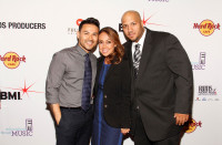En el Show de Beneficencia de BMI y Los Producers están: Sebastian Krys de Los Producers; Victoria Lanier, Directora Ejecutiva de Education Through Music – Los Angeles; y Delia Orjuela de BMI. View Photo