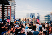Liquid Death hydrates attendees at BMI’s Rooftop On The Row. View Photo