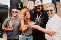 BMI’s Rooftop On The Row performer Lauren Watkins enjoys a custom cocktail provided by presenting sponsor George Dickel with George Dickel representatives and BMI’s Clay Bradley. View Photo